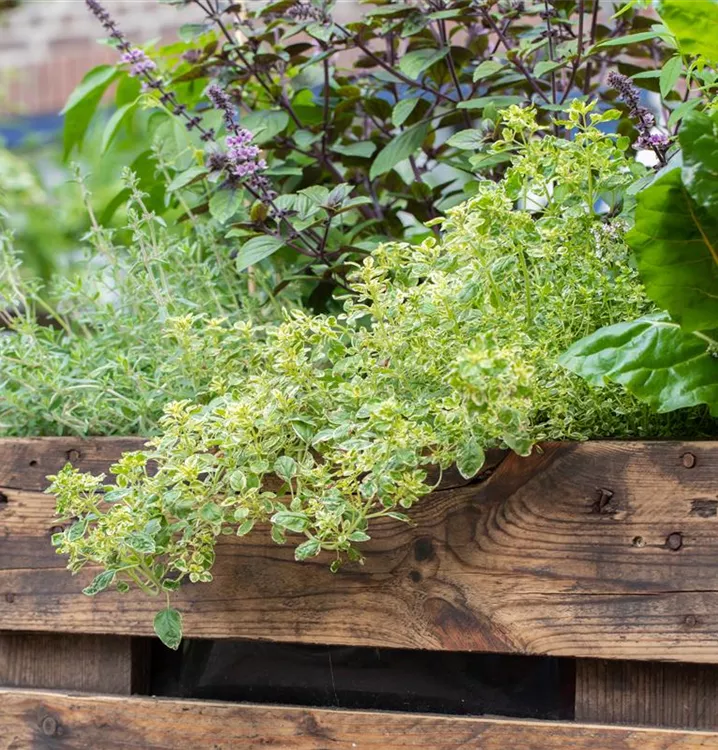 Der Gelbrandiger Garten-Thymian (Thymus x citriodorus) ist eine Kräuterpflanze mit einem aromatischen Geschmack. Seine grünen Blätter sind eiförmig. Für das optimale Wachstum des Gelbrandiger Garten-Thymians werden ein sonniger Standort und durchlässiger, nährstoffreicher Boden benötigt.
