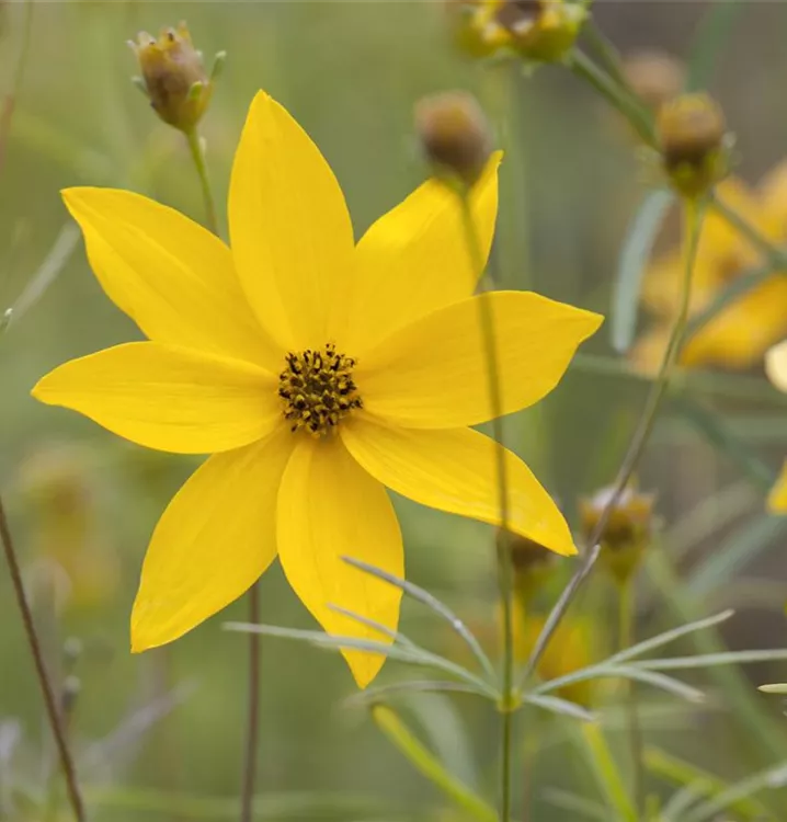Coreopsis verticillata 'Grandiflora' bildet strahlenförmige, gelbe Blüten ab Juni.