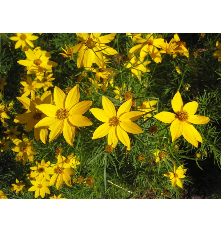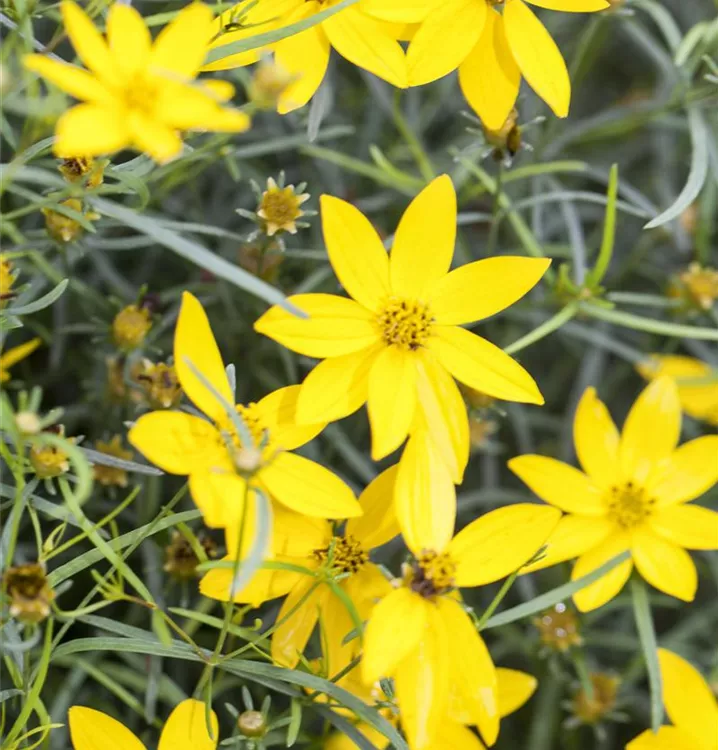 Coreopsis verticillata 'Zagreb' bildet strahlenförmige, gelbe Blüten ab Juni.