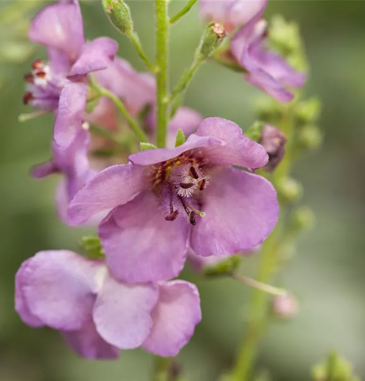 Verbascum phoeniceum 'Violetta' bildet schalenförmige, in Rispen angeordnete, purpurviolette Blüten ab Mai.