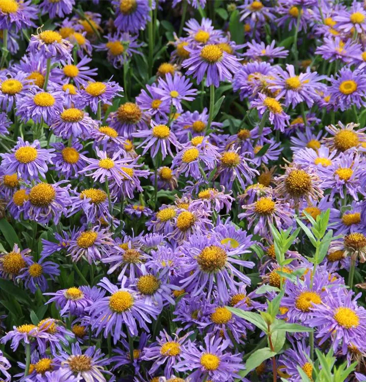 Ein violetter Strahlenkranz sorgt von Mai bis Juni für magische Momente. Jedenfalls, wenn Sie die Niedrige Garten-Aster 'Dunkle Schöne' Ihr eigen nennen. Wer sie blühen sieht, hat das Gefühl, in ein Gesicht voller Geheimnisse und Schönheit zu schauen. Die Farbe mit dem mystischen Effekt steht in herrlichem Kontrast zu dem gelben Innenleben der Blüte und dem gefälligen Mittelgrün der Stängel. Ihr polsterartiger Wuchs macht sie zum Teamplayer in jedem Beet.