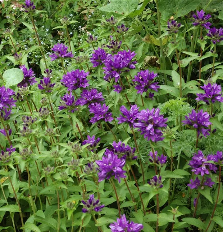 Sie ist super und sie heißt auch so, die Garten-Knäuel-Glockenblume 'Superba'. Die Vielzahl ihrer blauen Blütenköpfe, die sich wie zu einem Knäuel am oberen Ende der kraftvollen Stängel zusammenfinden, macht ihren besonderen Reiz aus. Mit ihrem halben Meter Wuchshöhe ist sie für jedes Beet eine Bereicherung, aber auch in einem Kübel trägt sie zur Verschönerung ihrer Umgebung bei.
