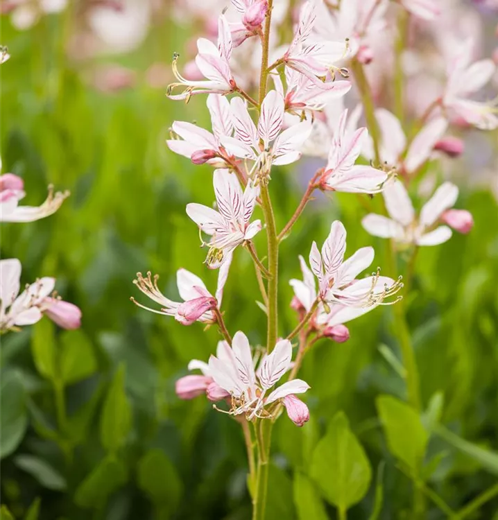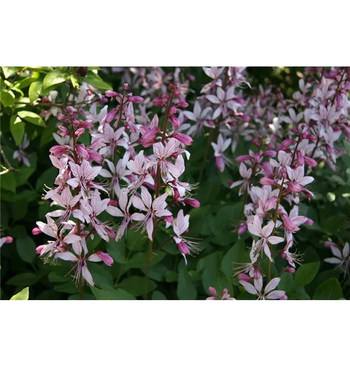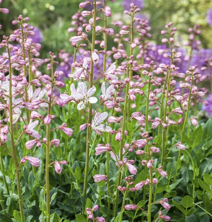Der Gewöhnliche Diptam (Dictamnus albus) ist eine aufrechte Staude, die von Juni bis Juli rosafarbene, in Rispen angeordnete Blüten mit einem angenehmen Duft bildet. An einem sonnigen bis halbschattigen Standort mit durchlässigem, nährstoffreichem Boden erreicht er gewöhnlich eine Höhe von ca. 80 cm und wird ca. 60 cm breit. Der Gewöhnliche Diptam ist gut frostverträglich.