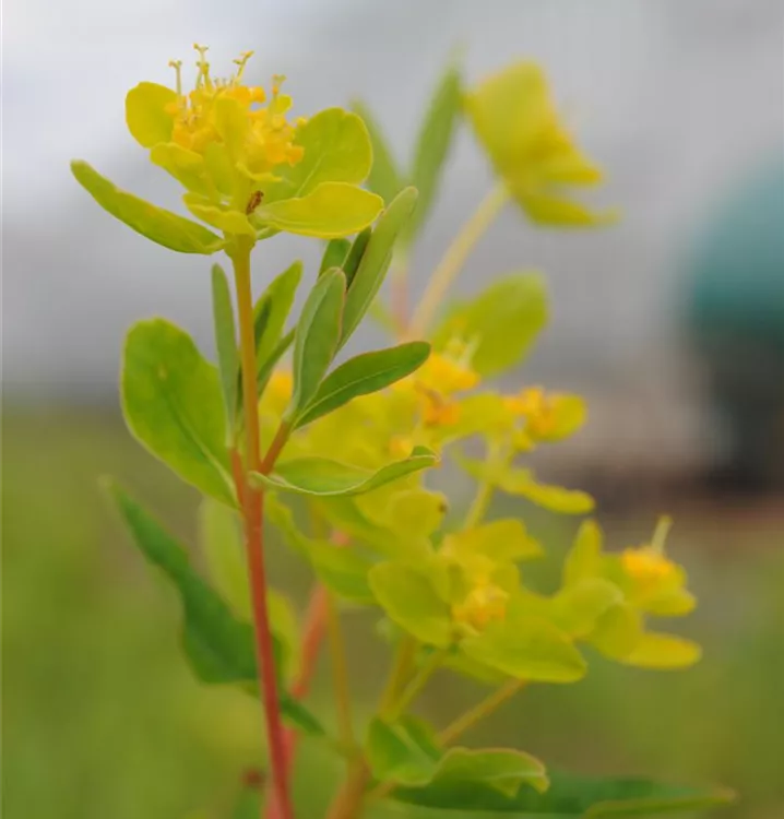 Duftende Blüten außergewöhnlicher Gestalt besitzt die Sumpf-Wolfsmilch. Auf den ersten Blick scheint diese gelbe Pracht von großblättrigen Kronen gebildet zu werden – doch diese Blüten bestehen aus umgewandelten, sonnengelben Hochblättern. Leuchtend grüne Blätter farblich abgesetzter Mittelrippe, eine teils rötliche Sprossachse und eine vollendete, abwechslungsreiche Herbstfärbung komplettieren das Farbspiel dieses auffälligen Exoten.