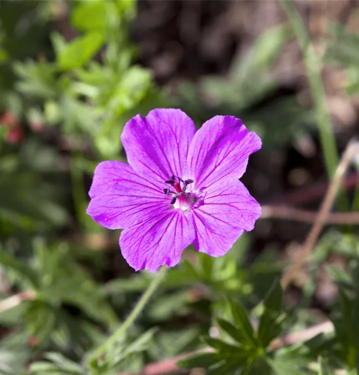 Geranium sanguineum 'Tiny Monster' bildet schalenförmige, magentafarbene Blüten ab Mai. Bei richtiger Pflege Nachblüte im September.