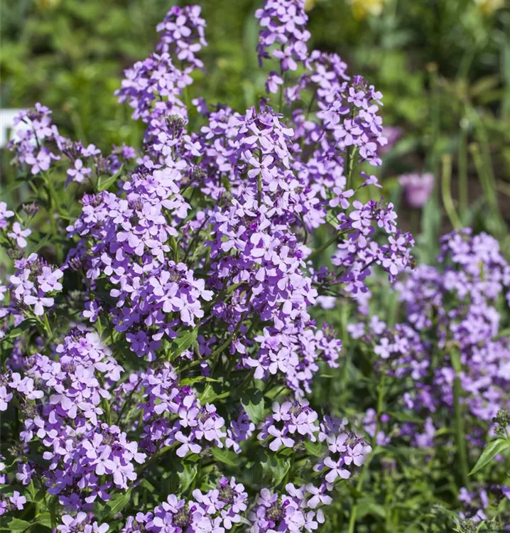 Hesperis matronalis bildet in Trauben angeordnete, violette Blüten ab Mai. Diese verströmen einen starken Duft.