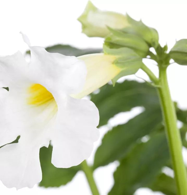 Die Staudengloxinie 'Snowtop' (Incarvillea delavayi) ist eine Staude, die von Juni bis Juli weiße, trichterförmige Blüten mit einem angenehmen Duft bildet.