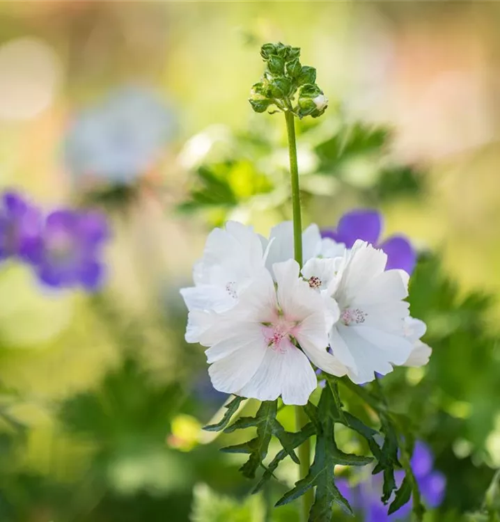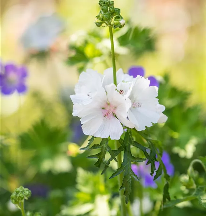 Malva moschata 'Alba' bildet schalenförmige, weiße Blüten ab Juni. Diese verströmen einen angenehmen Duft.