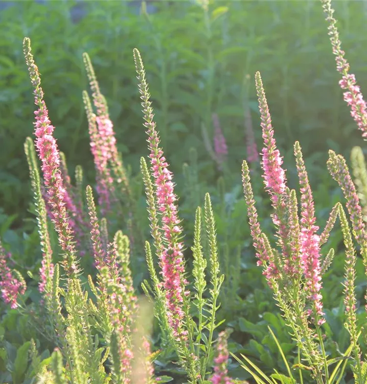 Veronica spicata 'Rotfuchs' bildet rachenförmige, in Ähren angeordnete, rosarote Blüten ab Juli.