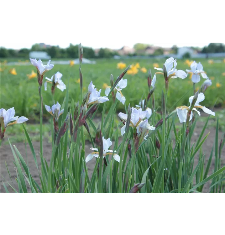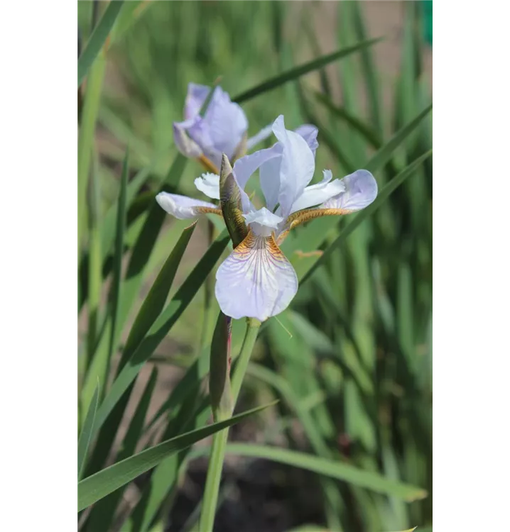 Iris sibirica 'Mrs. Rowe' bildet helllilafarbene Blüten ab Mai.