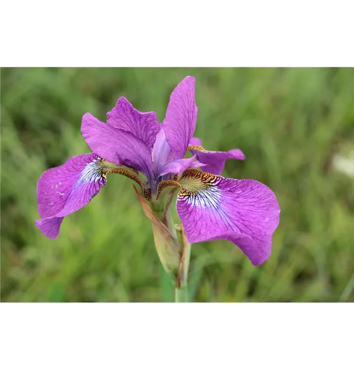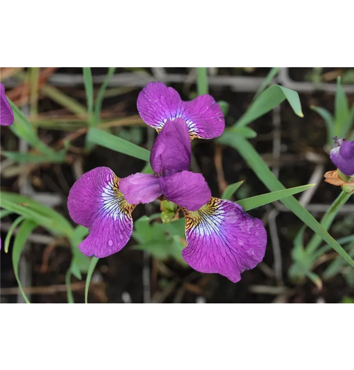 Iris sibirica 'Wine Wings' bildet purpurrote Blüten ab Mai.
