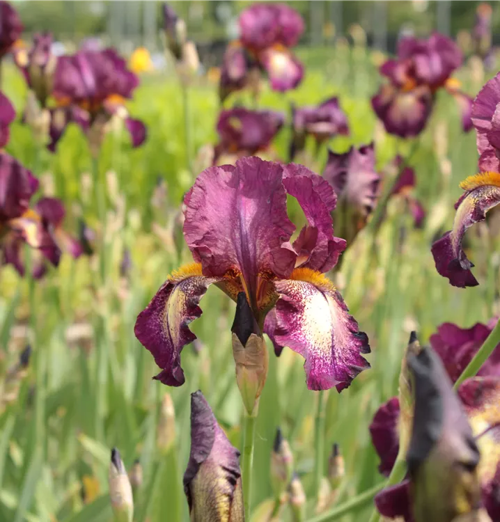 Bart-Iris (Iris barbata) zählen zu den beliebtesten Gartenstauden weltweit – und das nicht ohne Grund: Ihre prächtigen Blüten, die in unzähligen Farbvariationen erscheinen, sorgen über viele Wochen hinweg für ein eindrucksvolles Schauspiel.
