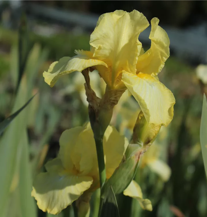 Bart-Iris lieben die Sonne. Ideal sind vollsonnige, warme Standorte mit gut durchlässigem Boden. Der darf gern nährstoffreich und auch lehmig sein, sollte aber nicht zu sauer und auf keinen Fall staunass sein. Ein leicht alkalischer pH-Wert ist optimal. Staunässe führt zu Rhizomfäule.