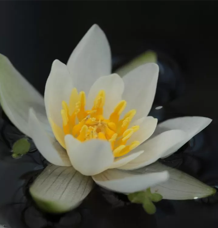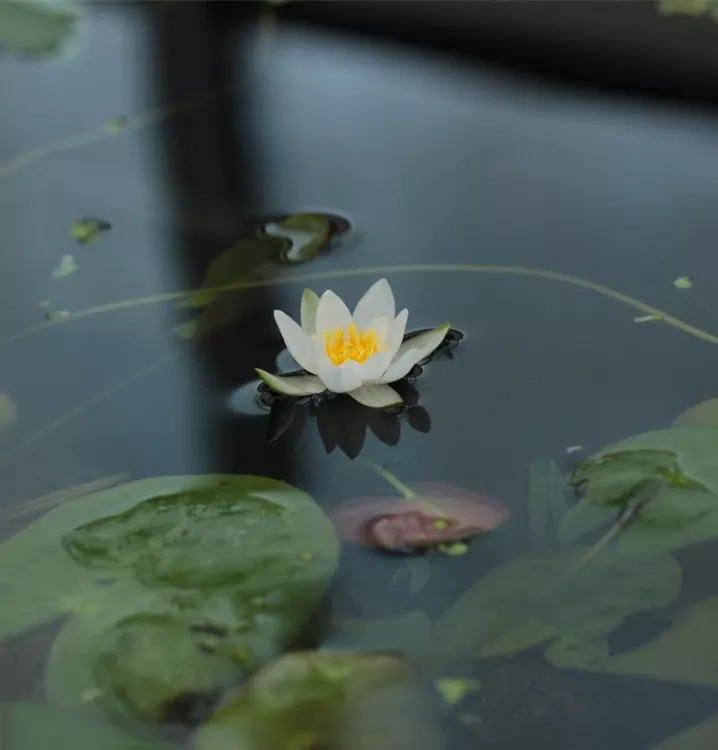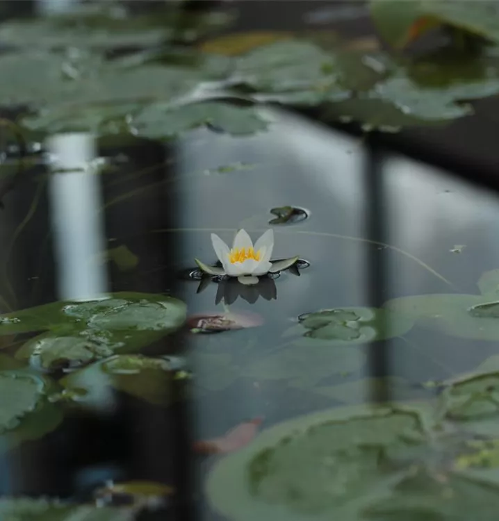 Die Zwerg-Seerose (Nymphaea tetragona) ist eine Wildart aus den nördlichen Regionen Europas, Asiens und Nordamerikas. Sie ist die kleinste aller Seerosen, ihre zarten weißen Blüten erreichen gerade einmal 3 bis max. 5 cm Durchmesser.