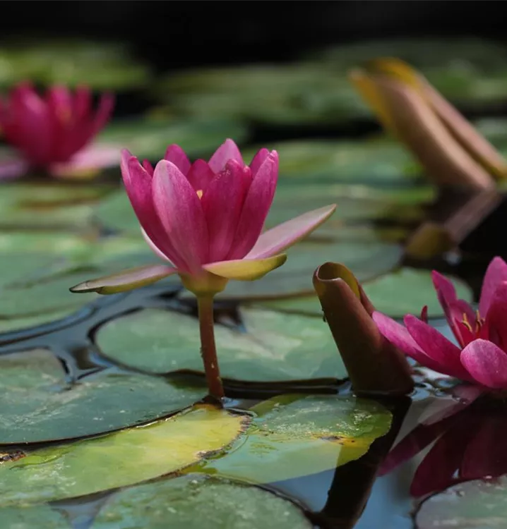 Seerosen lieben ruhige Gewässer, daher sollten Sie in Ihrem Seerosenteich auf einen Springbrunnen und andere "Wellenerzeuger" verzichten.