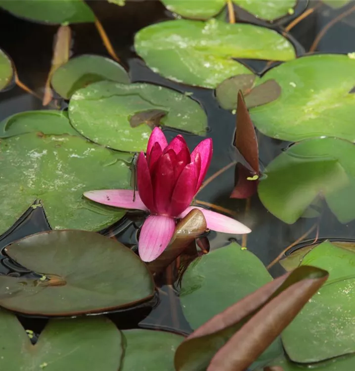 Die Sorte wächst am besten in einer Wassertiefe zwischen 25 und 50 cm und braucht rund 1 m² Platz. Der Bereich sollte sonnig sein, denn Seerosen brauchen viel Licht und Wärme für eine reiche Blüte. 'Froebeli' blüht aber auch kühleren Sommern zuverlässig.