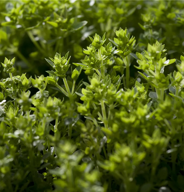 Zum Verzehr geeignet. Die mittelgrünen, gewellten Blätter sind eiförmig und überzeugen mit würzigem Geschmack.
