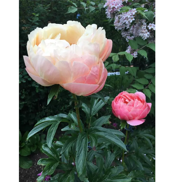 Die Frühblühende Garten-Pfingstrose 'Coral Charm' setzt schöne Akzente gemeinsam mit: