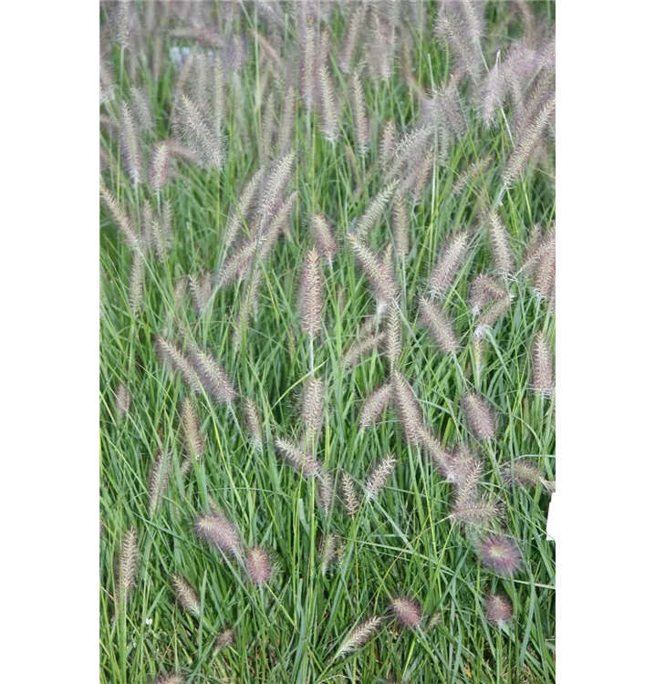 Das Lampenputzergras 'National Arboretum' (Pennisetum alopecuroides 'National Arboretum') hat breite, glänzende Blätter und Blütenstände mit sehr dunklen Borsten, so dass sie fast schwarz aussehen. Die Sorte samt sich reichlich selbst aus. Höhe: 60-80 cm.