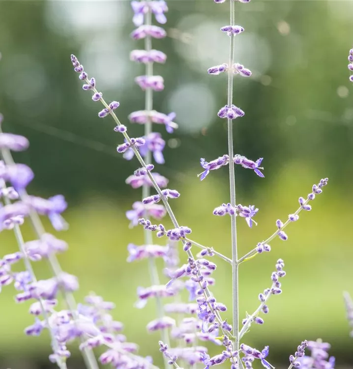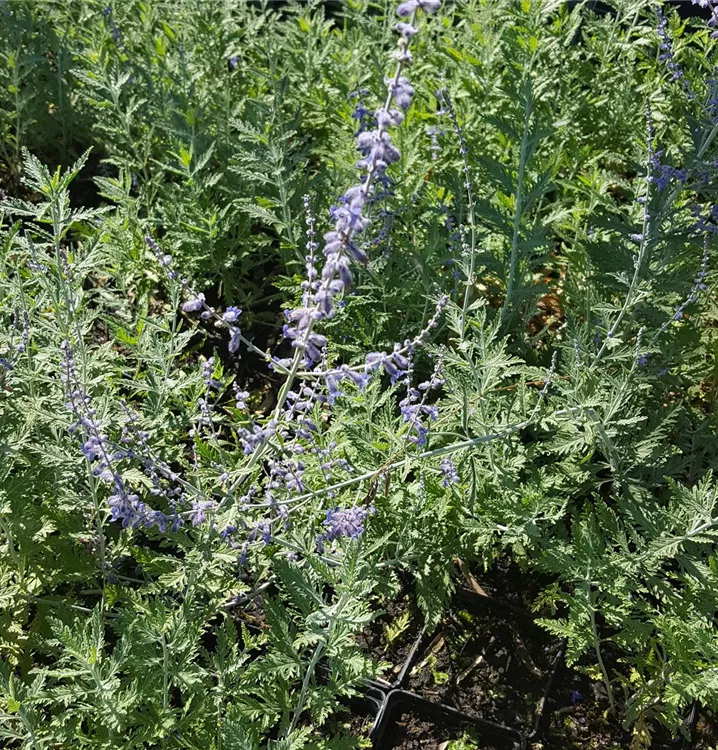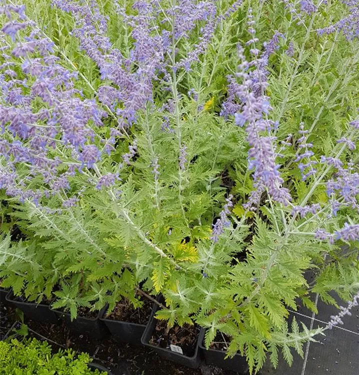 Die Blauraute 'Blue Spire' (Perovskia atriplicifolia 'Blue Spire') ist ein silbrig belaubter Halbstrauch, der Wuchshöhen von bis zu 150 cm und eine Breite von etwa 80 cm erreichen kann.