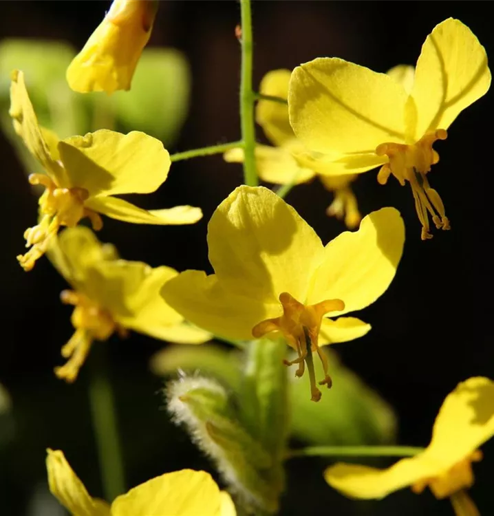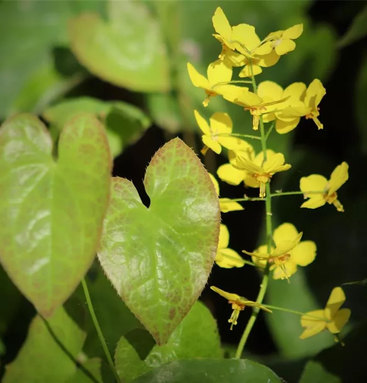 Die Frohnleiten-Garten-Elfenblume 'Frohnleiten' (Epimedium x perralchicum) ist eine ausladend wachsende, kriechende wintergrüne Staude, die von April bis Mai gelbe, in Trauben angeordnete Blüten bildet. An einem halbschattigen bis schattigen Standort mit durchlässigem, lockerem, saurem Boden erreicht sie gewöhnlich eine Höhe von ca. 30 cm und wird ca. 30 cm breit. Die Frohnleiten-Garten-Elfenblume 'Frohnleiten' ist gut frostverträglich.