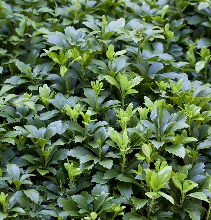 Diese immergrüne Staude bezaubert insbesondere mit einem kontrastreichen Schauspiel aus Blatt- und Blütenschmuck. Sie ist damit eine optimale Alternative zu anderen Schattenpflanzen wie Efeu oder Farne. Pachysandra terminalis gedeiht auf fast allen Böden hervorragend. Mit Hilfe seiner unterirdischen Ausläufer breitet es sich ziemlich schnell aus. Es ist besonders gut zur Unterpflanzung von Gehölzen geeignet, da es auch den Wurzeldruck von größeren Bäumen mühelos ertragen kann.