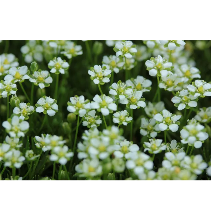 Sie brauchen einen richtig schönen Bodendecker, der einen feinen Charakter aufweist? Das Sternmoos wird Ihnen gefallen. Wie ein samtiger Teppich breitet es sich aus, wenn es einen Sonnenplatz oder einen halbschattigen Wachstumsort erhält. Von Juni bis Juli bringt das mattenbildende Moos weiße Blüten hervor, die fröhlich aus dem grünen Untergrund hervorleuchten. Mit seinen 8 cm Wuchshöhe ist es auch hervorragend für den Steingarten geeignet. Sein Wurzelwerk fühlt sich in lockerem Boden wohl.
