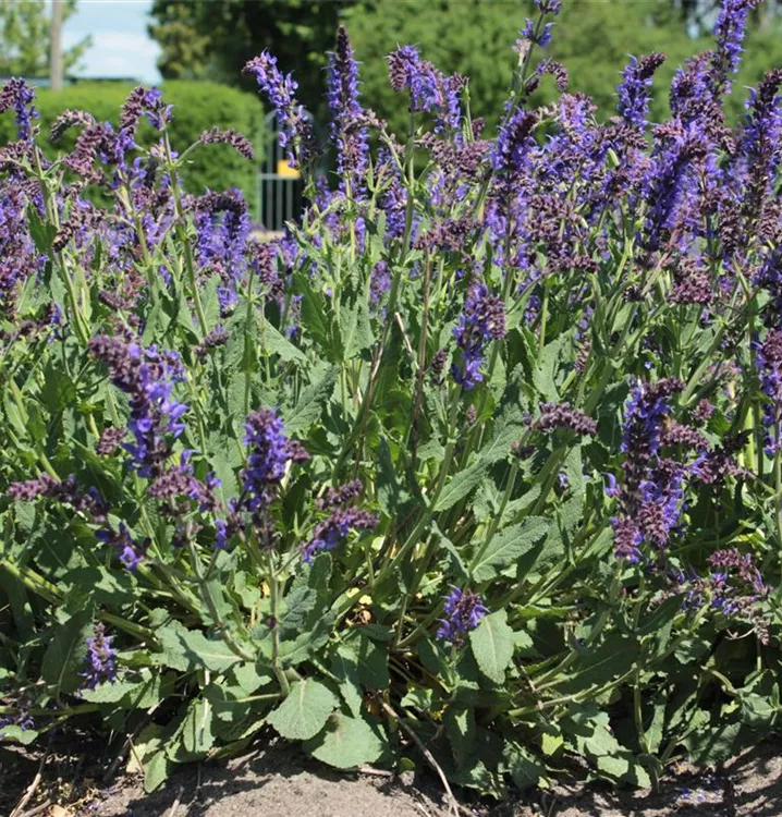 Der Steppen-Salbei 'Mainacht' (Salvia nemorosa 'Mainacht') erinnert vom Wuchs mehr an Wiesen-Salbei (Salvia pratensis). Auch die Blüte beginnt etwas früher, schon ab Mai. Die Blüten sind dunkel violettblau. Die Blütenstände sind verzweigt und die Einzelblüten sind größer als bei den meisten Sorten und stehen weiter auseinander. Wird 60 cm hoch und wird 45 cm breit.