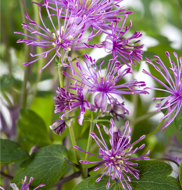 Thalictrum aquilegifolium 'Purplelicious' bildet in Rispen angeordnete, lilafarbene Blüten ab Mai.